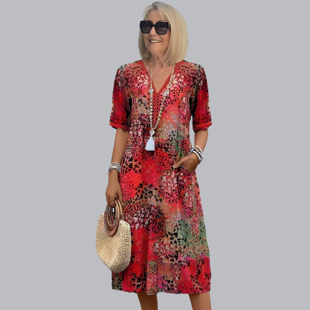 Sabine™ | Elegantes Midikleid mit lebendigem Design