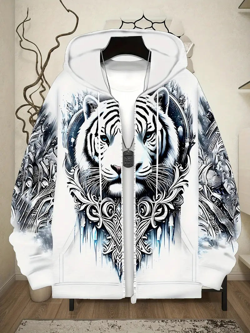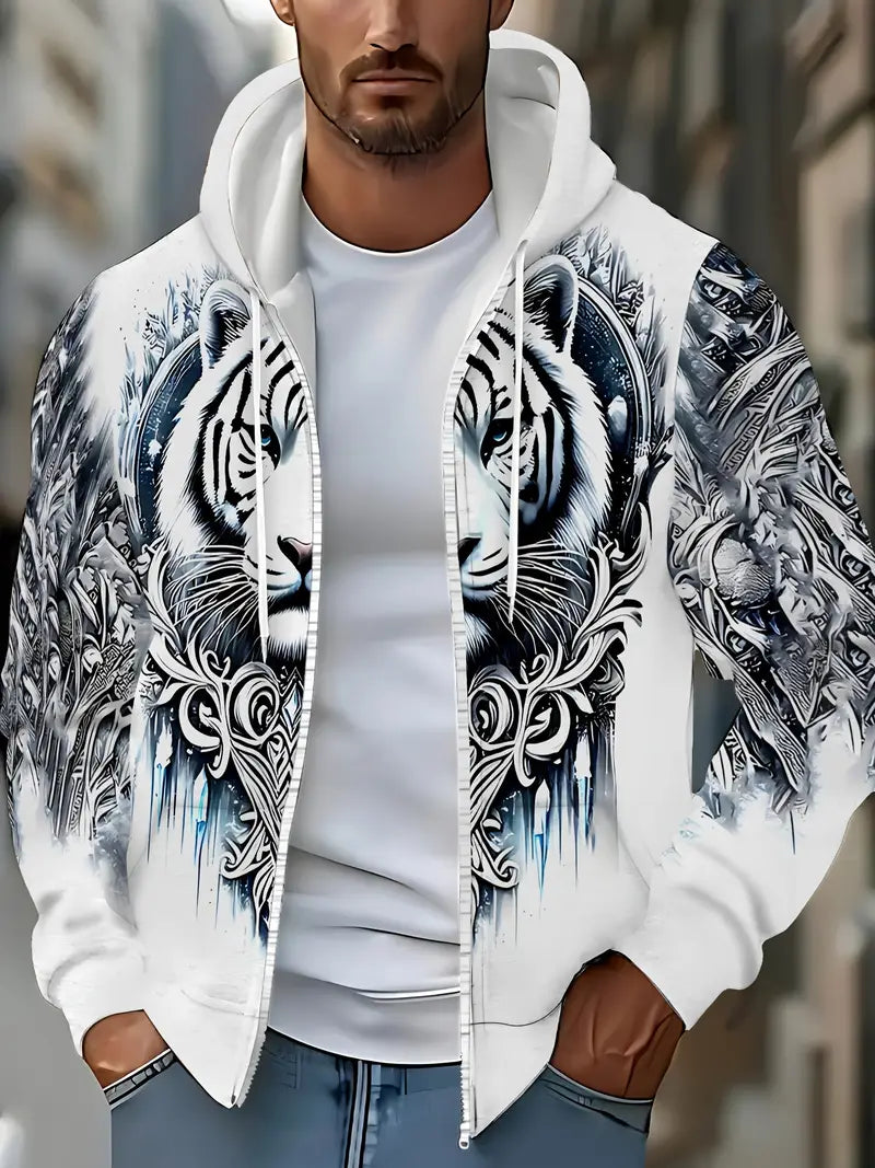Simon - Lässiger Kapuzenpullover mit 3D-Druck und Reißverschluss für Herren
