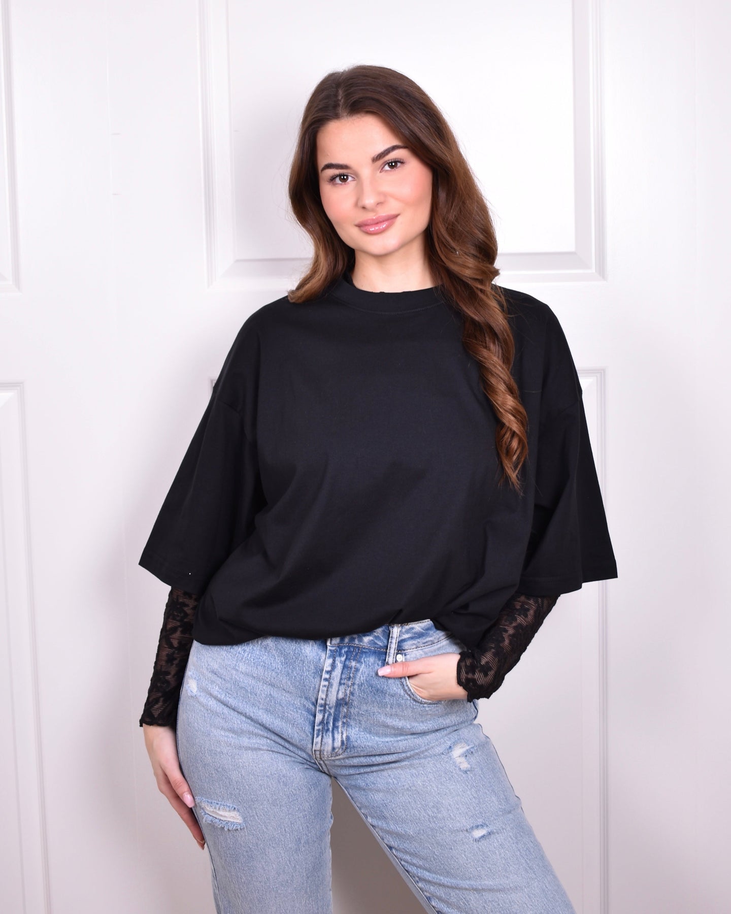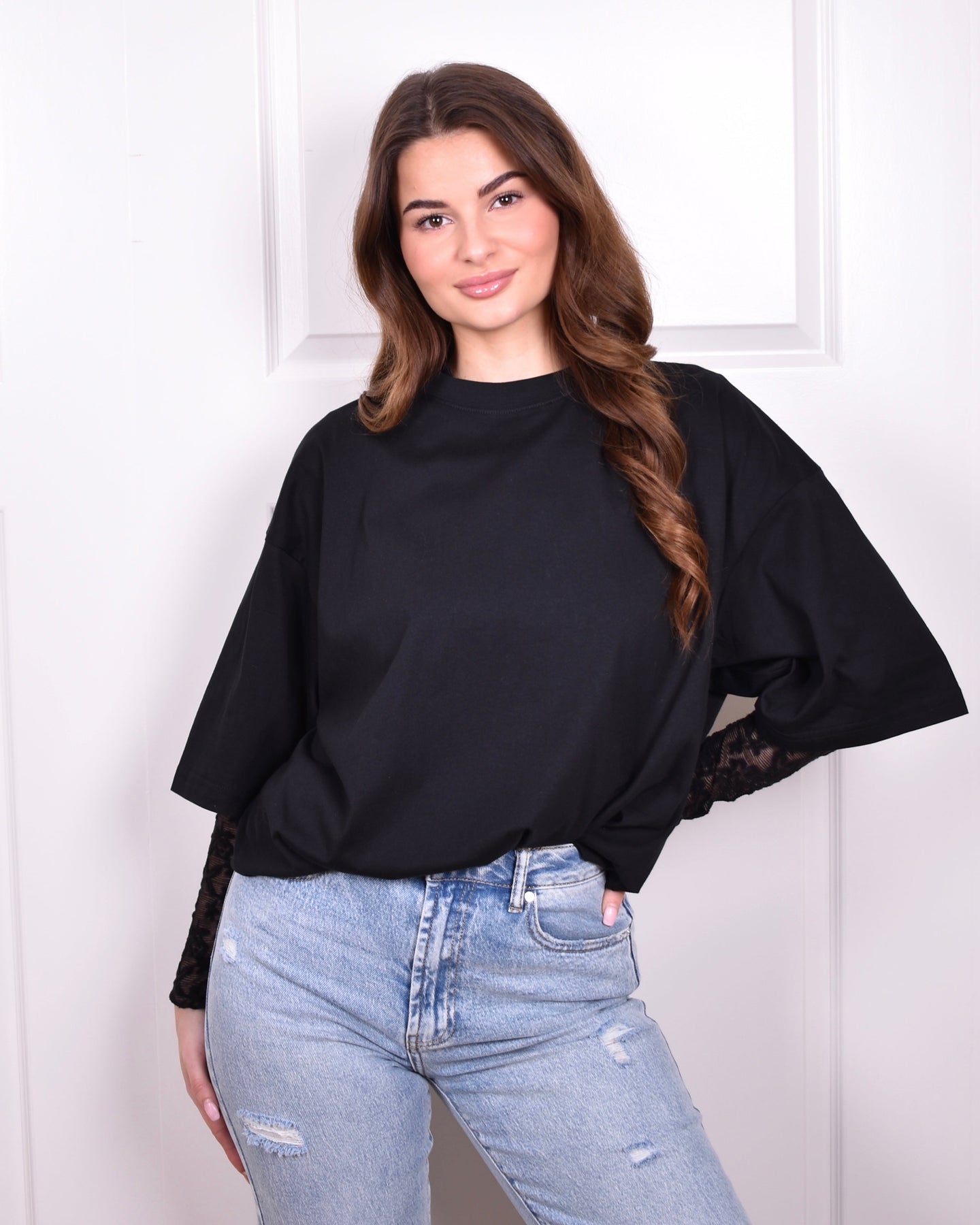 Styling-Tipp: Kombinieren Sie das Spitzen-Top mit einer High-Waist-Jeans und Statement-Ohrringen für einen stilvollen Abend-Look oder tragen Sie es mit einem Blazer für eine edle Note.