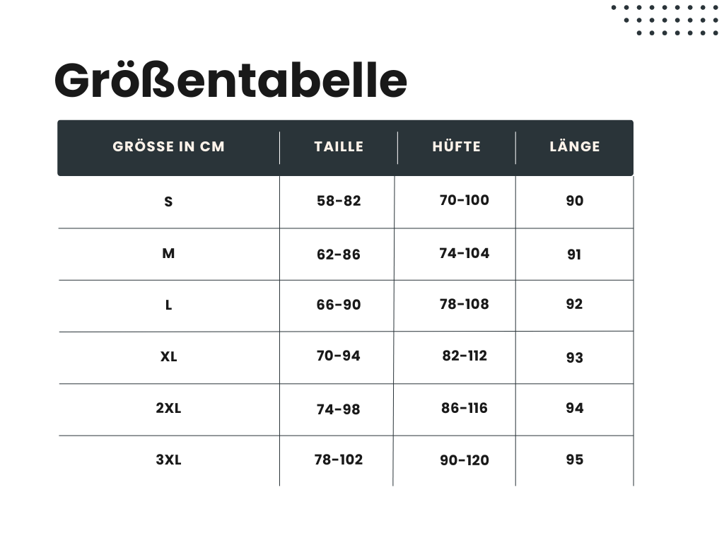 Für den bestmöglichen Tragekomfort empfehlen wir Ihnen, einen Blick auf unsere Größentabellen. Bitte zur benötigten Größentabelle scrollen