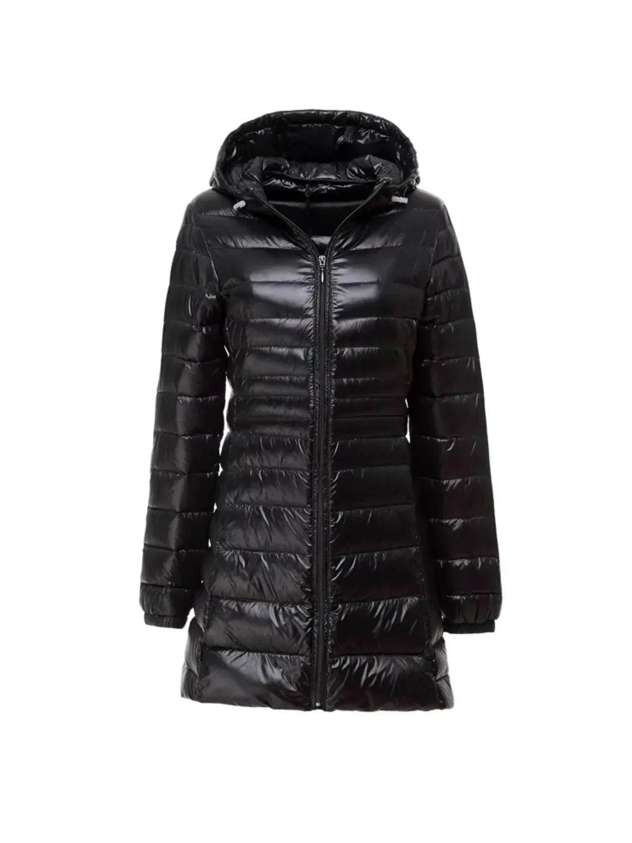 Damen Lange Steppmantel mit Kapuze