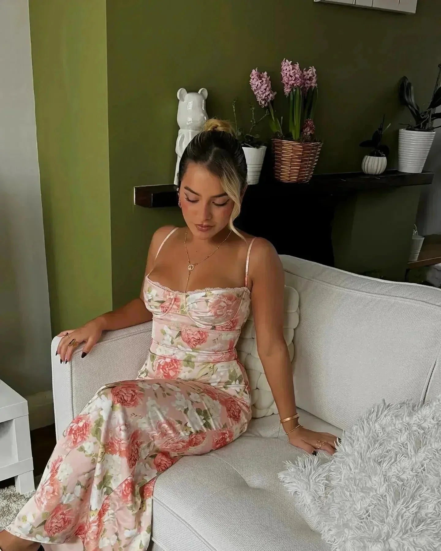 Verleihen Sie Ihrem Auftritt eine romantische Note mit diesem exquisiten Damen Maxikleid in Satinoptik, das mit einem faszinierenden floralen Design versehen ist. Perfekt für besondere Anlässe, kombiniert dieses Kleid Eleganz mit einem Hauch von zeitgenössischer Mode. Die sanften Farben und das fließende Material spielen harmonisch zusammen, um Ihnen ein atemberaubendes Aussehen zu verleihen.