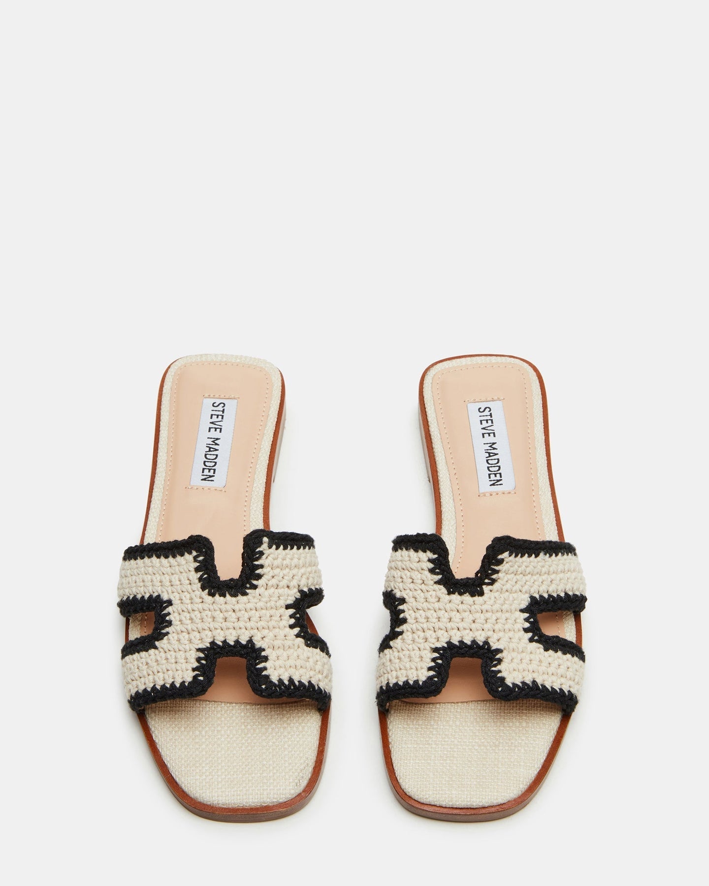 Geometrische Aussparungen auf dem breiten, einzelnen Riemen der Hildegard™-Pantolette verleihen diesem flachen sandalettendesign einen frischen Look.