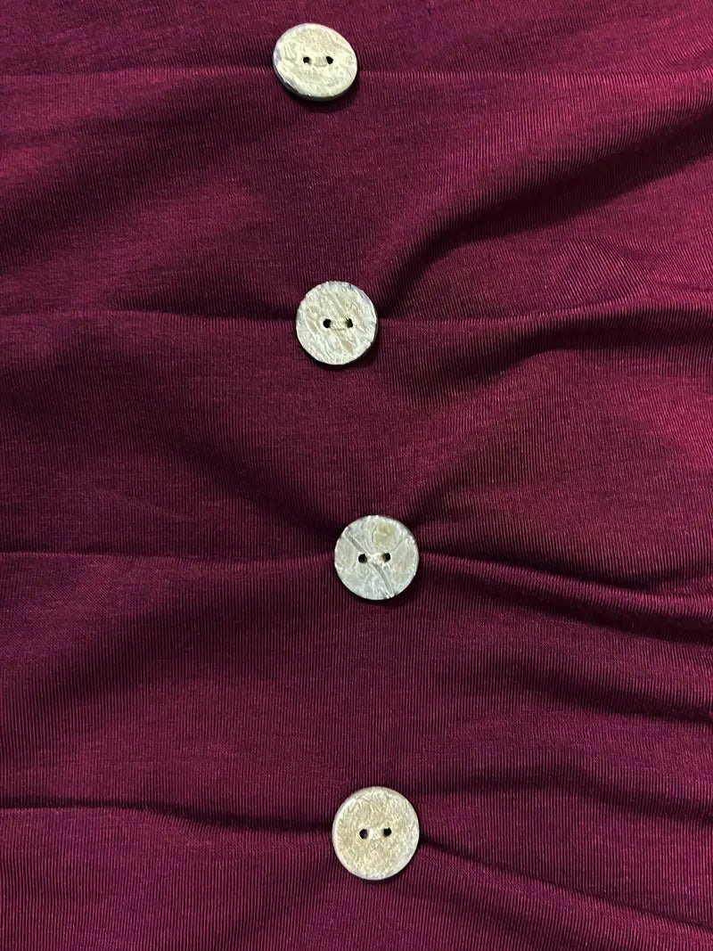 Auffällige Knopfdetails: Das Ianthe T-Hemd verfügt über eine einzigartige Reihe dekorativer Knöpfe an der Seite, die der klassischen Silhouette Persönlichkeit und Dimension verleihen. Dieser stilvolle Akzent zieht die Blicke auf sich und wertet den Schau auf, ohne zu auffällig zu sein. Es ist perfekt für alle, die subtile, aber unverwechselbare Mode lieben.