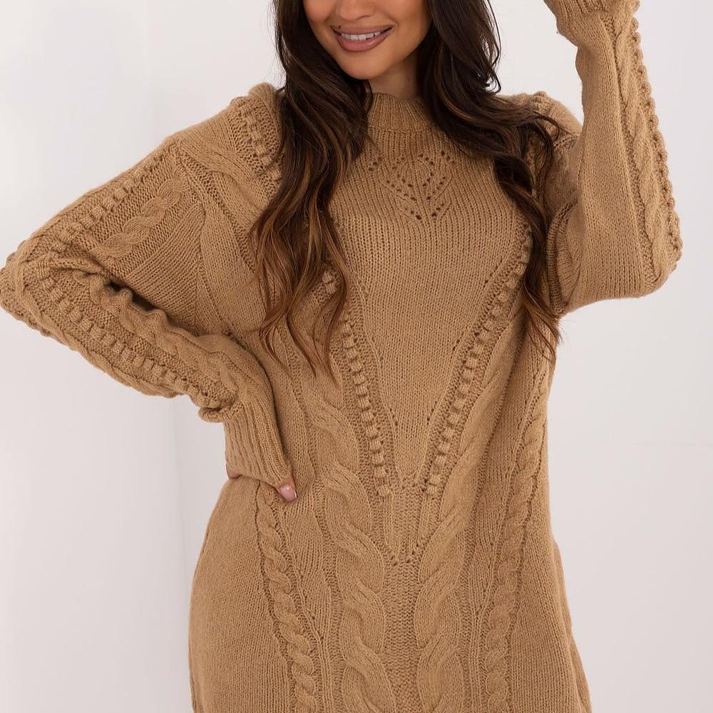 Dieses Pulloverkleid mit aufwändigem Kabelstrickmuster bietet Komfort und Stil in einem. Perfekt für elegante Outfits an kühleren Tagen.