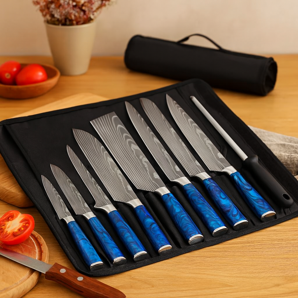 Kasian | 8-teiliges Edelstahl-Messerset mit Tragetasche
