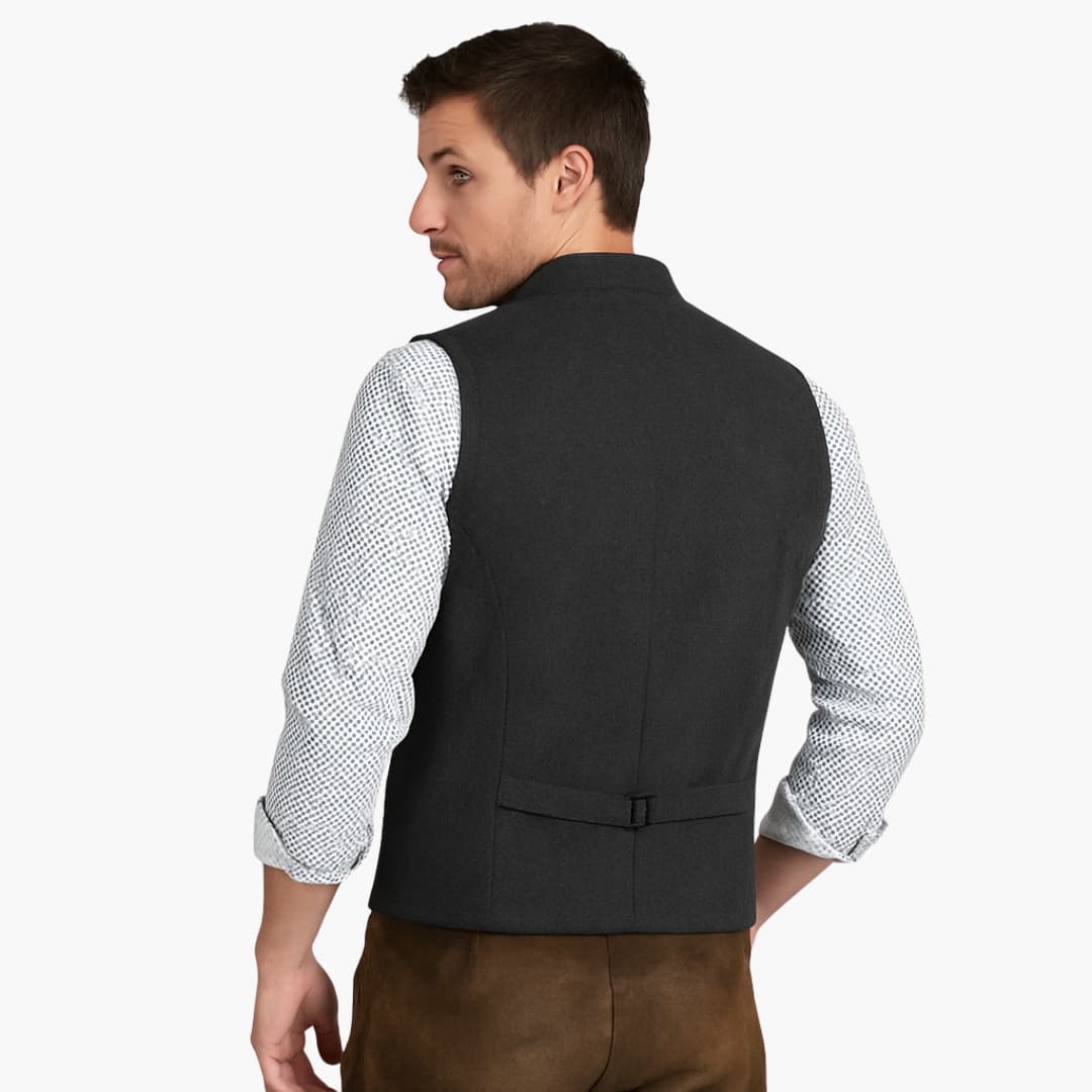 Diese klassische Trachtenweste vereint traditionelle Elemente mit einer modernen Form und ist speziell für Herren entworfen, die bei festlichen Anlässen oder Volksfesten einen strukturierten und gepflegten Look bevorzugen. Durch ihren klaren Schnitt und die dekorativen Akzente lässt sie sich sowohl zu traditioneller Tracht als auch zu zeitgemäßer Kleidung kombinieren.