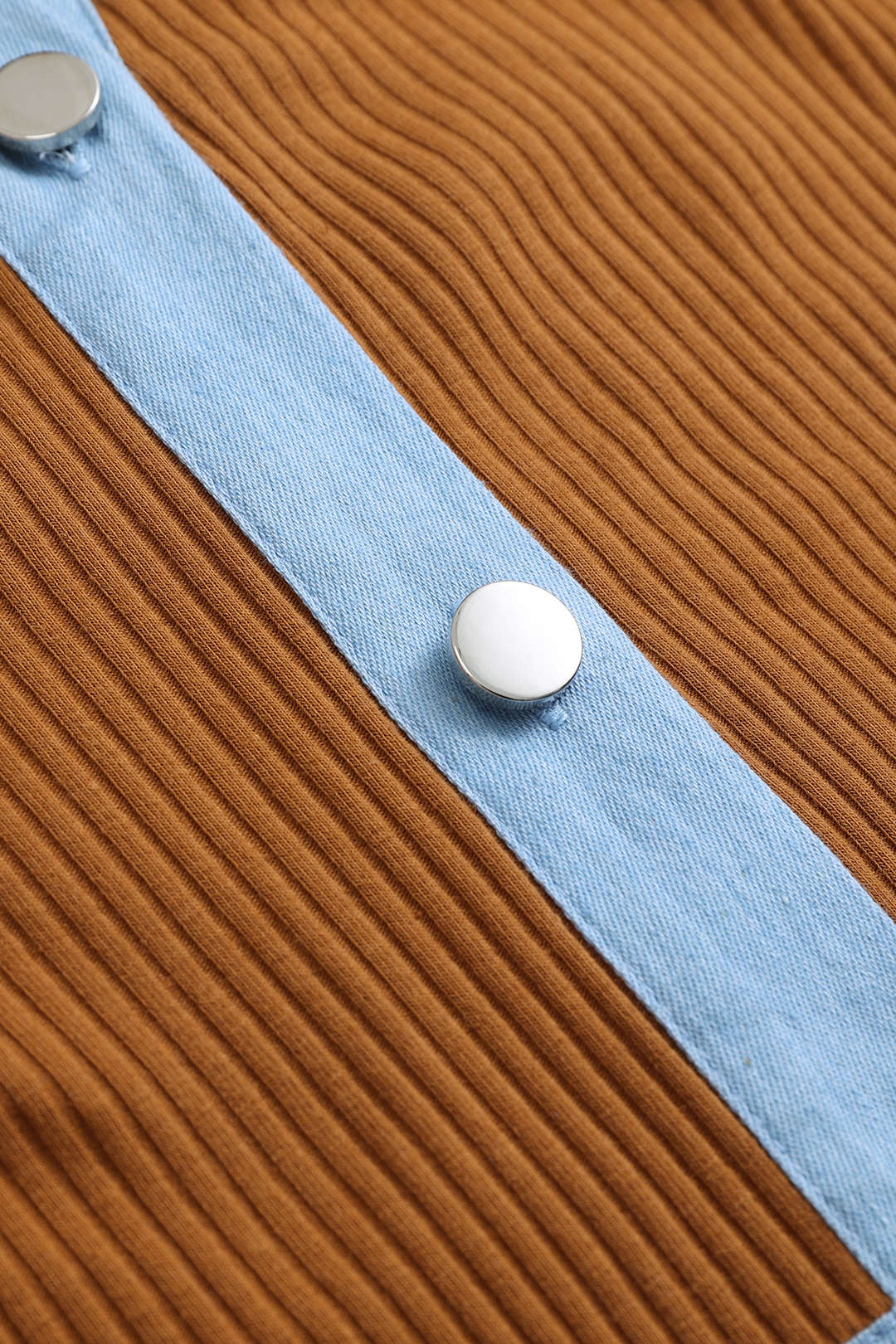 Das Lara Zweiteiler-Set kombiniert klassische Eleganz mit einem trendigen Twist. Das figurbetonte, gerippte Hemd mit kontrastierenden Denim-Details und Knopfleiste verleiht dem Look eine edle Note, während die Wide-Leg-Hose mit Reißverschluss-Detail für eine moderne, selbstbewusste Ausstrahlung sorgt. Perfekt für stilvolle Alltagslooks, Büro-Outfits oder besondere Anlässe.