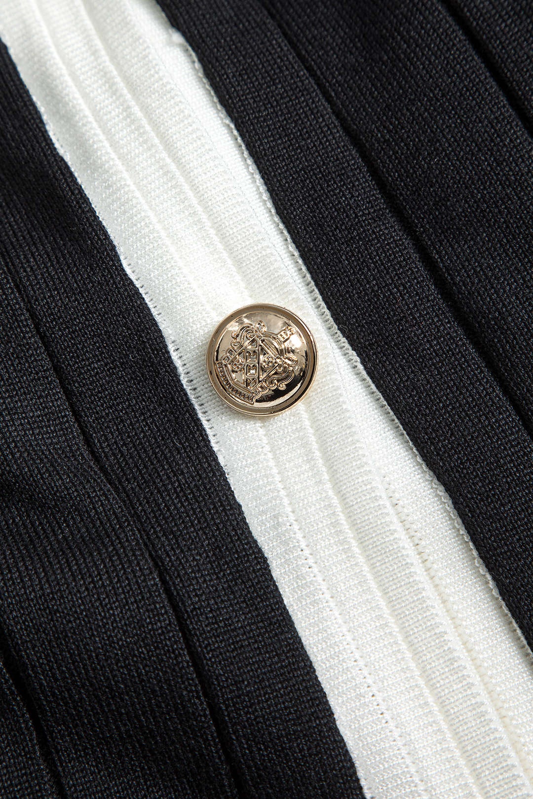 - Taillierte Strickjacke mit Goldknöpfen – Femininer Schnitt mit luxuriösen Details.