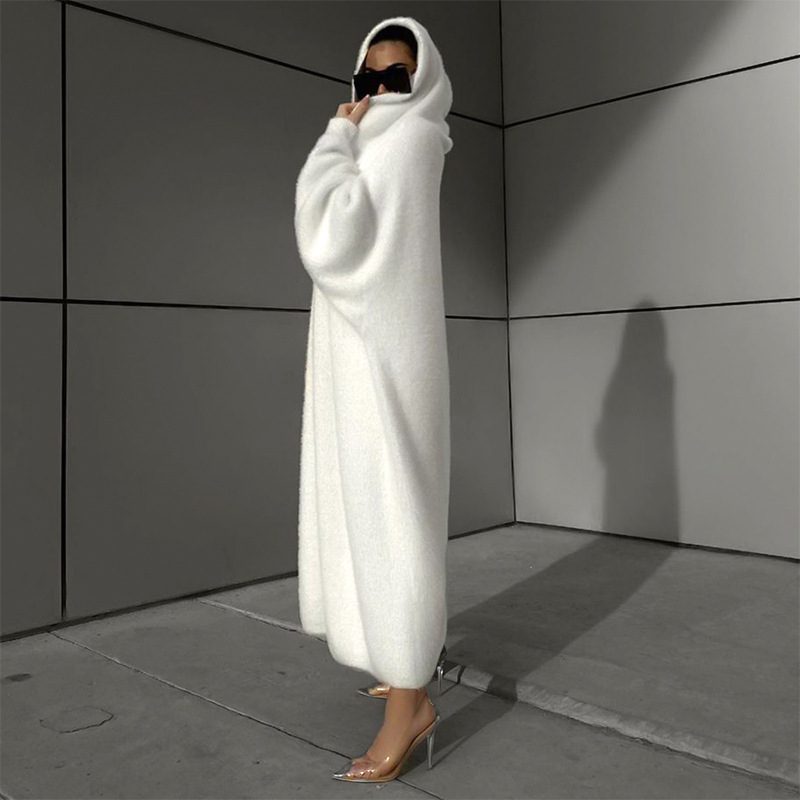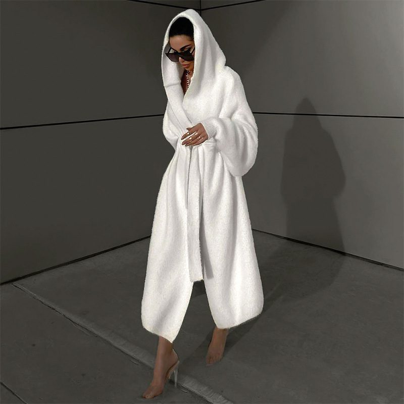Dieser luxuriöse Mantel begeistert mit seiner weiten Silhouette und dem weichen, kuscheligen Material. Die großzügige Kapuze verleiht dem Look eine exklusive Note, während der Bindegürtel die Taille betont und für eine feminine Silhouette sorgt.