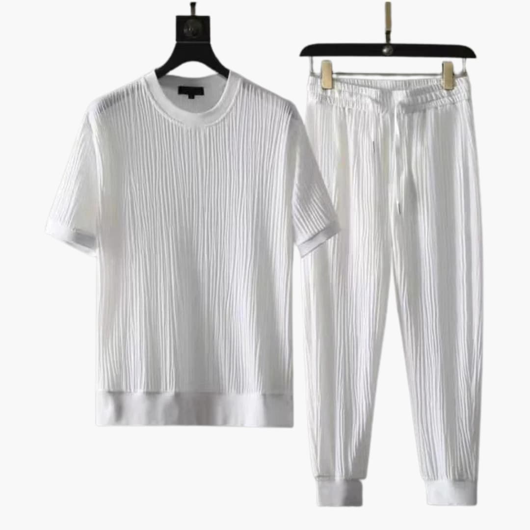 Zweiteiliges Set mit plissierter Struktur für warme Tage