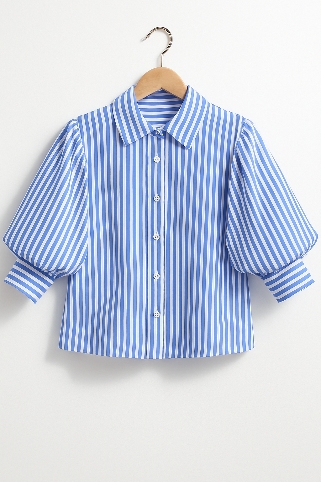 Diese Bluse bringt klassische Eleganz mit einem Hauch moderner Raffinesse in deinen Kleiderschrank. Die dezenten Streifen treffen auf voluminöse Puffärmel und verleihen jedem Look Charakter und Leichtigkeit. Ideal für Büro, Freizeit oder besondere Anlässe, sie lässt sich mühelos schick oder lässig kombinieren. Ein Must have für alle, die Wert auf Details und stilvolle Ausstrahlung legen.