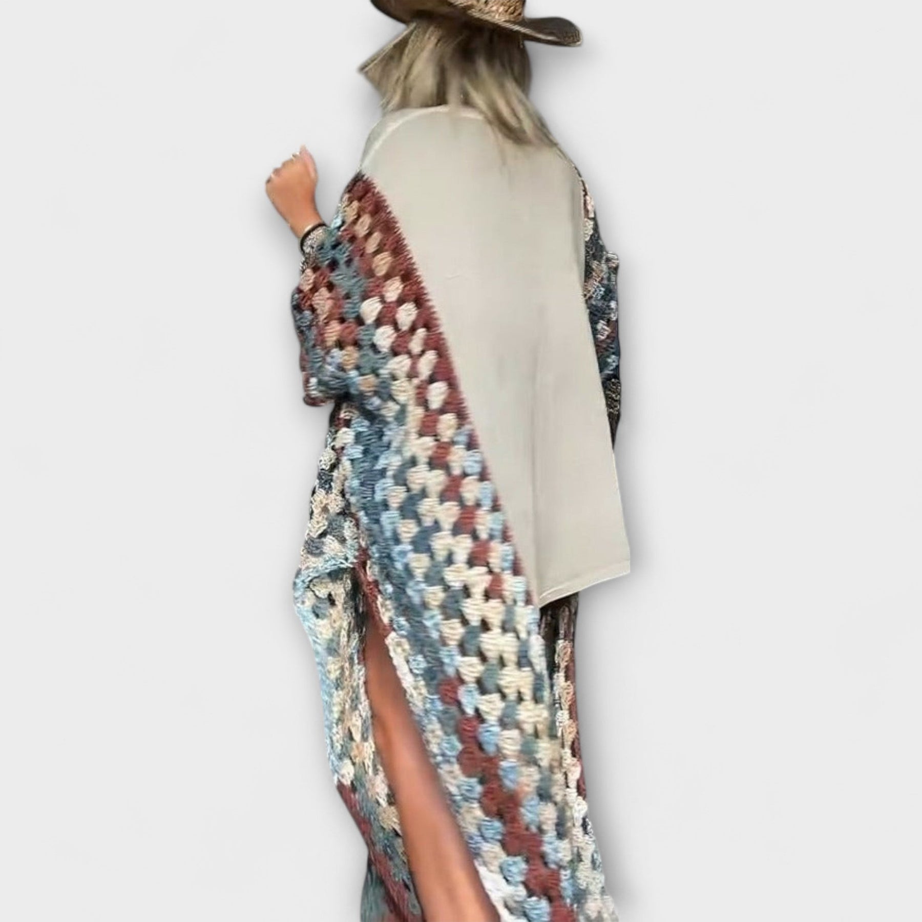 • Kreatives Ärmel-Design: Lange innere Häkelärmel verleihen unerwartetes Volumen und Bewegung.