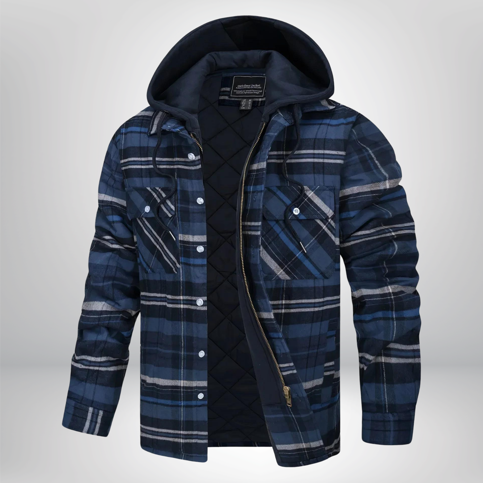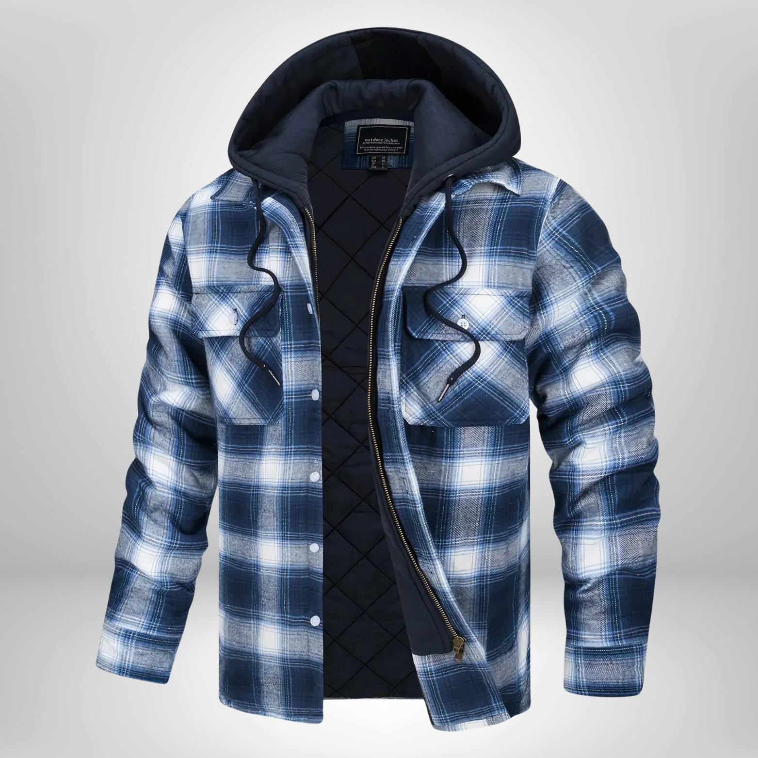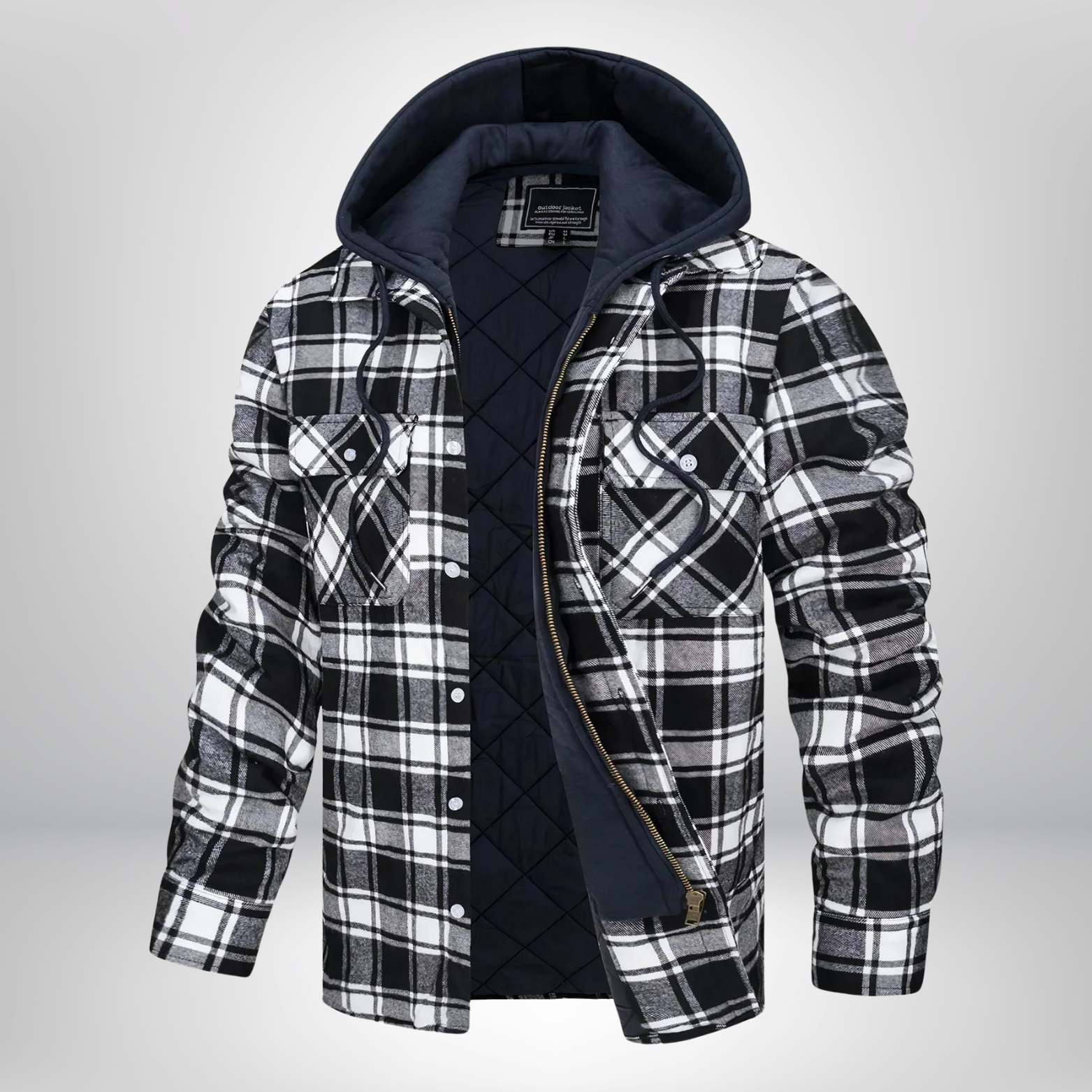 Die abnehmbare Kapuze sorgt für Anpassungsfähigkeit bei jedem Wetter und bietet unübertroffene Vielseitigkeit. Das robuste Karomuster und die hochwertige Verarbeitung sorgen für eine mutige, maskuline Ästhetik und machen diese Jacke zur perfekten Mischung aus Funktion und Mode für jedes Abenteuer.