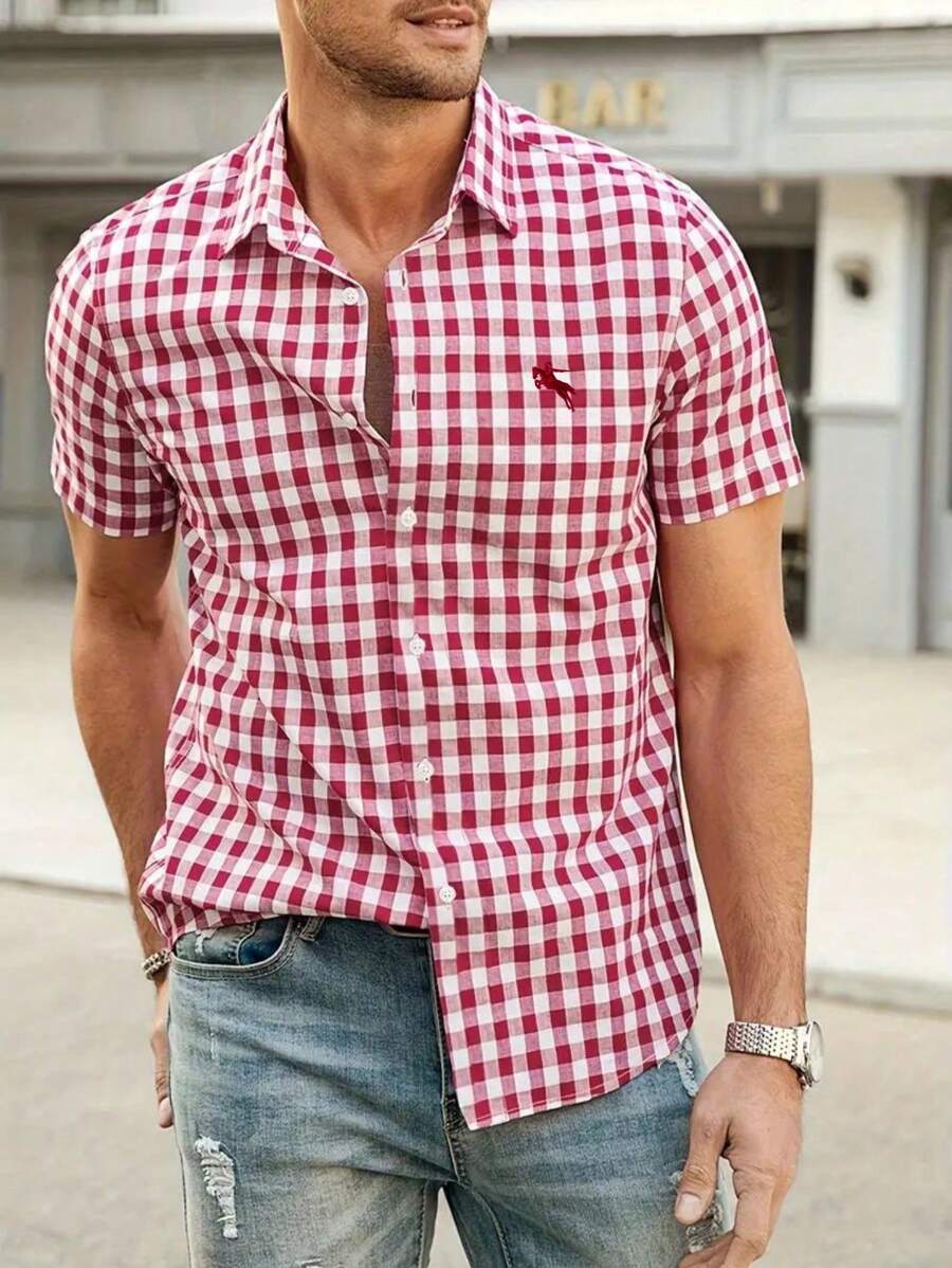 Oktoberfest Karohemd Herren – Kurzarm Trachtenhemd in Rot-Weiß
