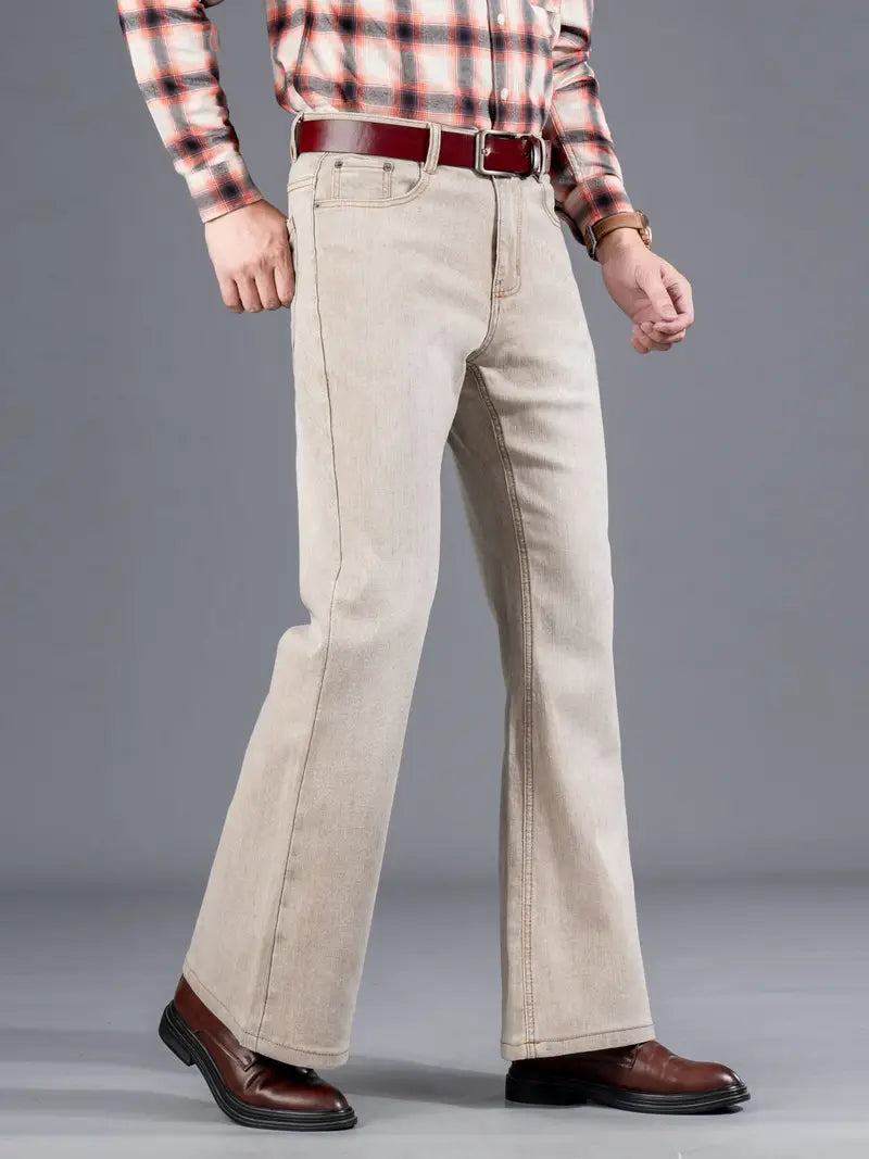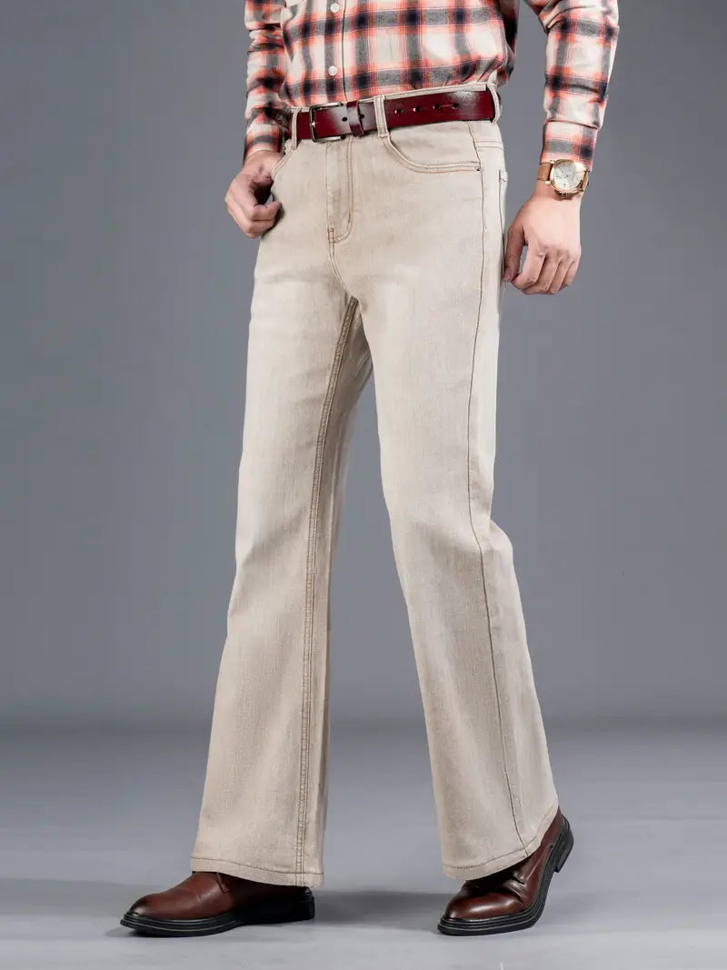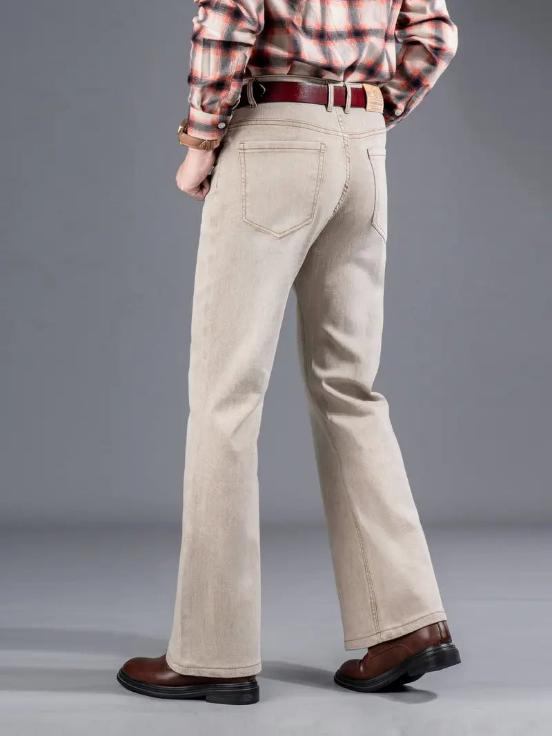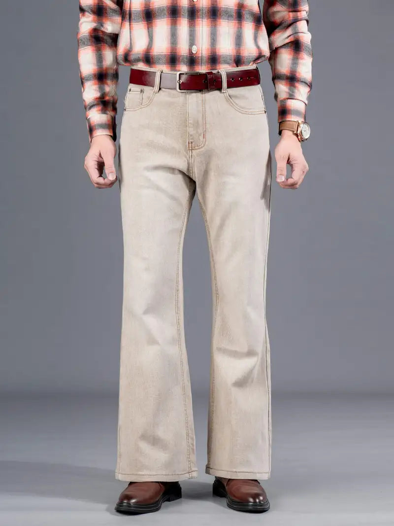 Die Vintage-Schlaghose aus Baumwollmischung für Herren bietet eine stilvolle und bequeme Passform mit einem Retro-inspirierten Design. Diese Hose aus einer weichen Baumwollmischung bietet ein atmungsaktives und strapazierfähiges Tragegefühl und eignet sich perfekt für den ganzen Tag. Der klassische Schlagschnitt verleiht ihnen einen einzigartigen und zeitlosen Look und verleiht Ihrer Garderobe einen Hauch von Vintage-Flair. Mit einer schmeichelhaften hohen Taille und einer entspannten Passform am Oberschenkel sind diese Hosen ideal für einen entspannten und dennoch modischen Stil.