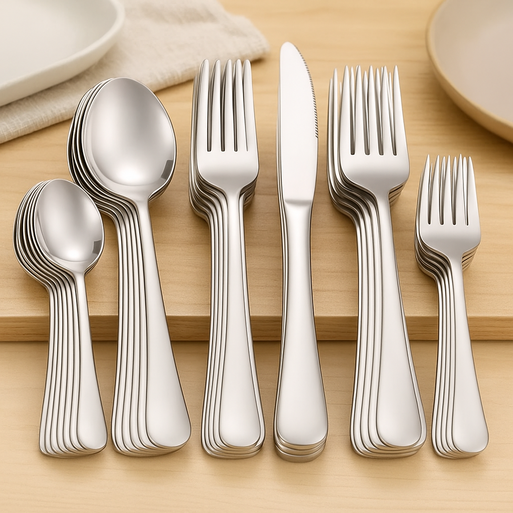• 30-teiliges Komplettset – Enthält Tafelmesser, -gabeln, -löffel, -gabeln und -löffel.