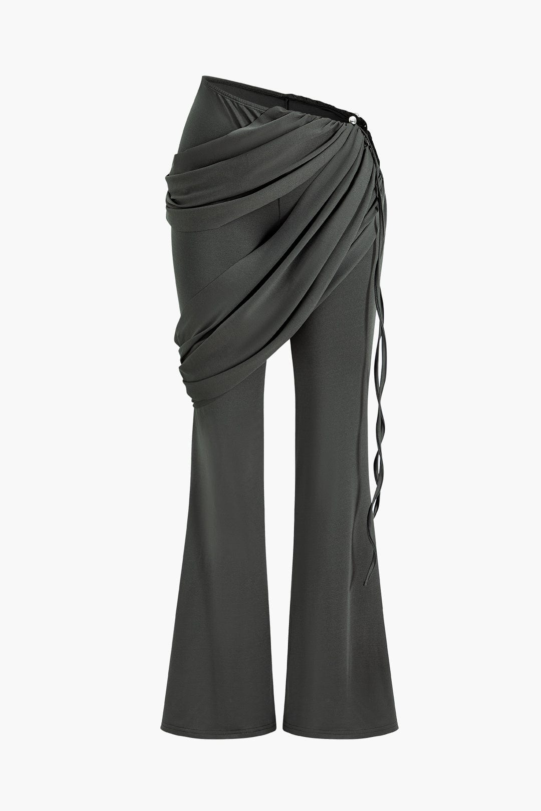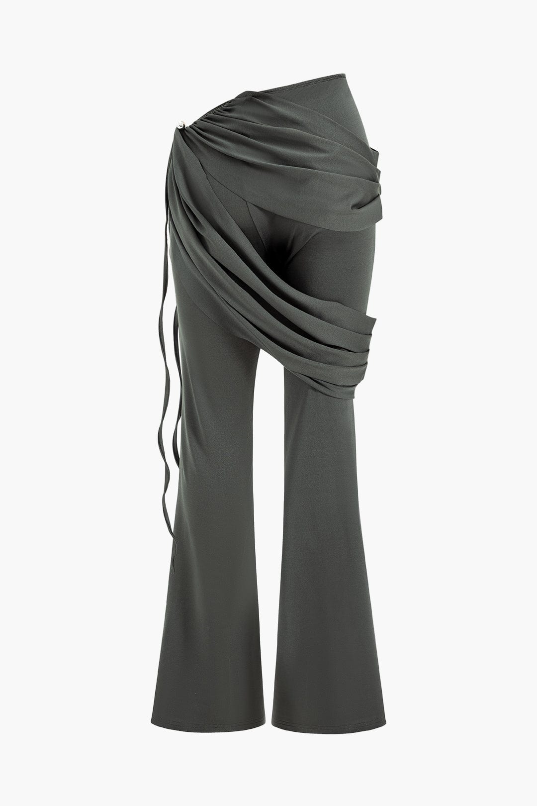 Das Sasha Zweiteiler-Set kombiniert moderne Eleganz mit einem Hauch von Extravaganz. Das ärmellose Top mit drapiertem Stoff sorgt für einen fließenden, schmeichelhaften Look, während die raffinierten Falten und seitlichen Schnürungen der Hose eine einzigartige Silhouette schaffen. Die ausgestellte Passform der Hose verleiht dem Outfit einen eleganten Touch und sorgt für eine anmutige Bewegung. Perfekt für besondere Anlässe, stilvolle Streetwear oder Abendveranstaltungen.