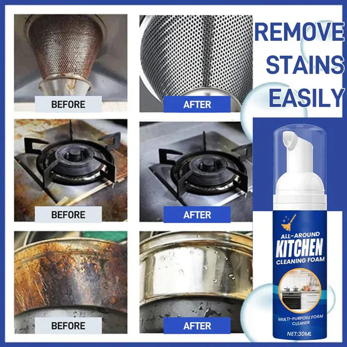 ScrubFoam™ ist ein leistungsstarker, ungiftiger Küchenreinigungsschaum, der Fett, Schmutz und Dreck schnell auflöst und Oberflächen fleckenfrei macht. Seine Vielseitigkeit geht über die Küche hinaus und macht ihn auch perfekt für die Reinigung von Autos.