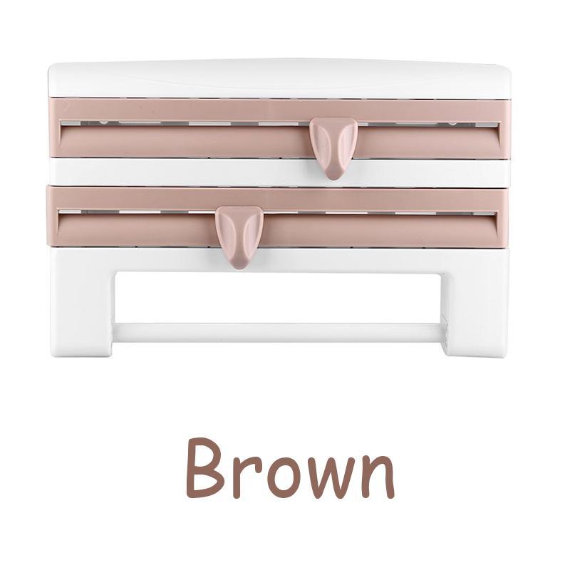 Mit scharfen, integrierten Klingen zum einfachen Schneiden von Frischhaltefolie und mehreren Fächern zur Aufbewahrung erleichtert dieser Organizer alltägliche Küchenaufgaben.